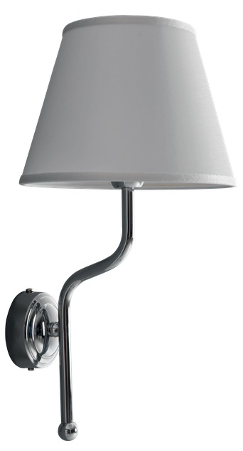 Kinkiet z białym kloszem.
