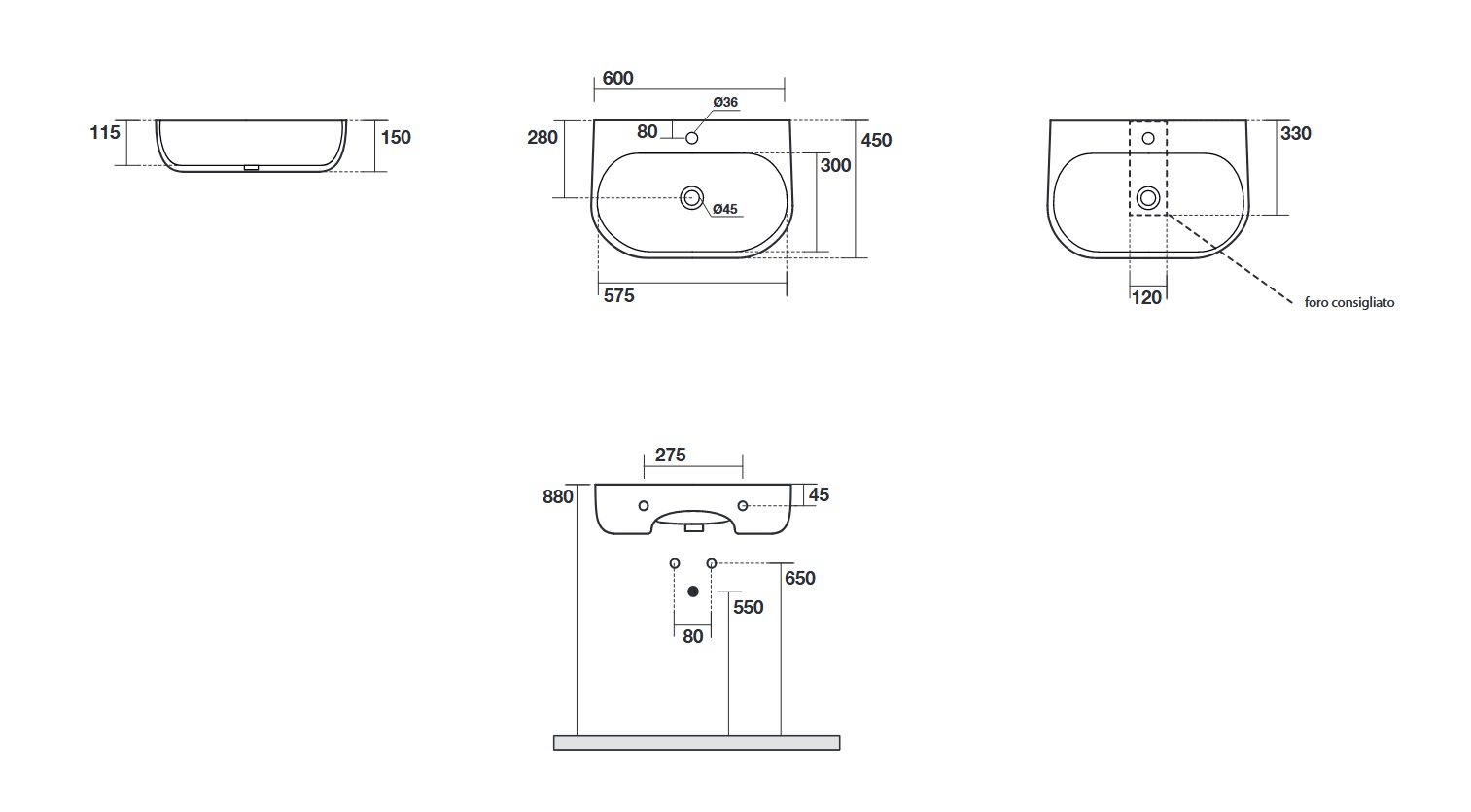 Kerasan Nolita Umywalka Ścienna/Stawiana na Blat 60x45 cm Biała 534101
