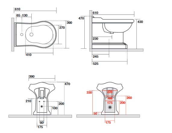 Kerasan Retro Bidet Stojący 39x61 cm Czarny 102204