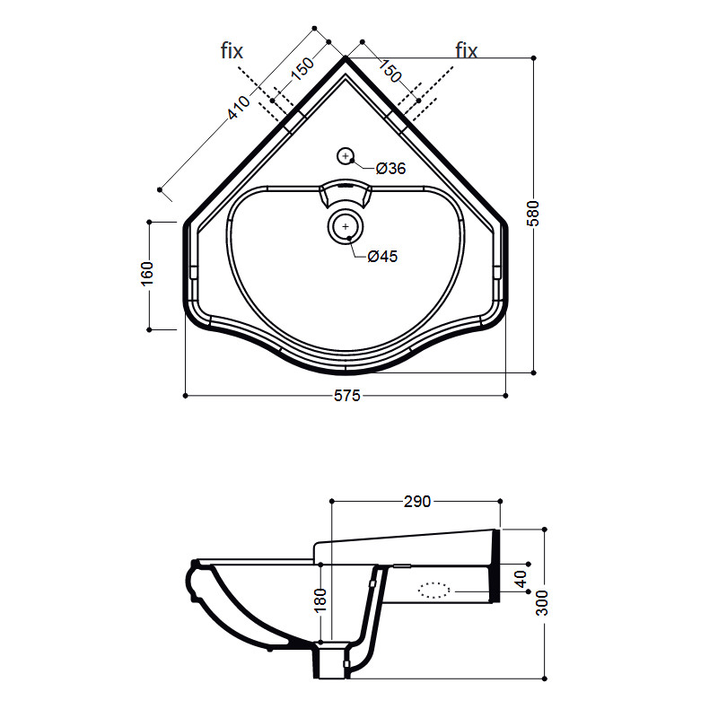 Kerasan Retro Umywalka narożna 57x58 czarny 103204