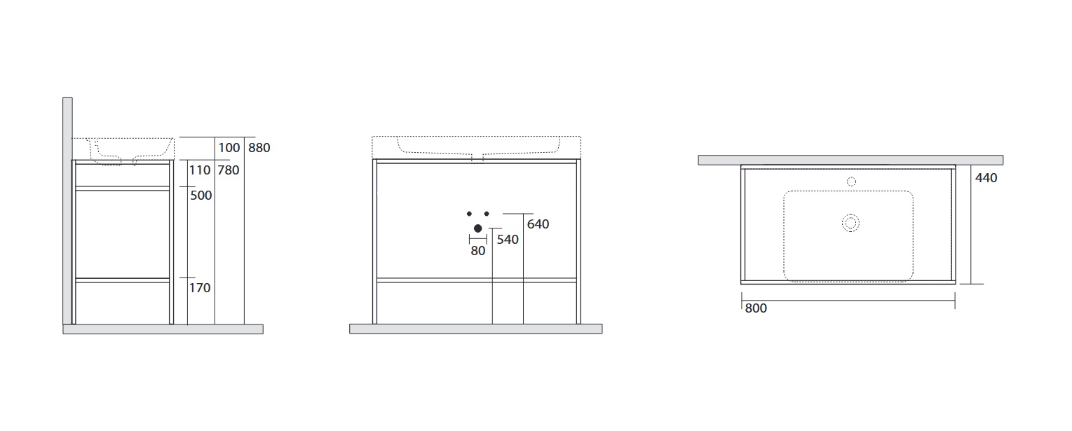 Kerasan Cento Struktura pod umywalkę 80x45 cm Czarny mat 924331