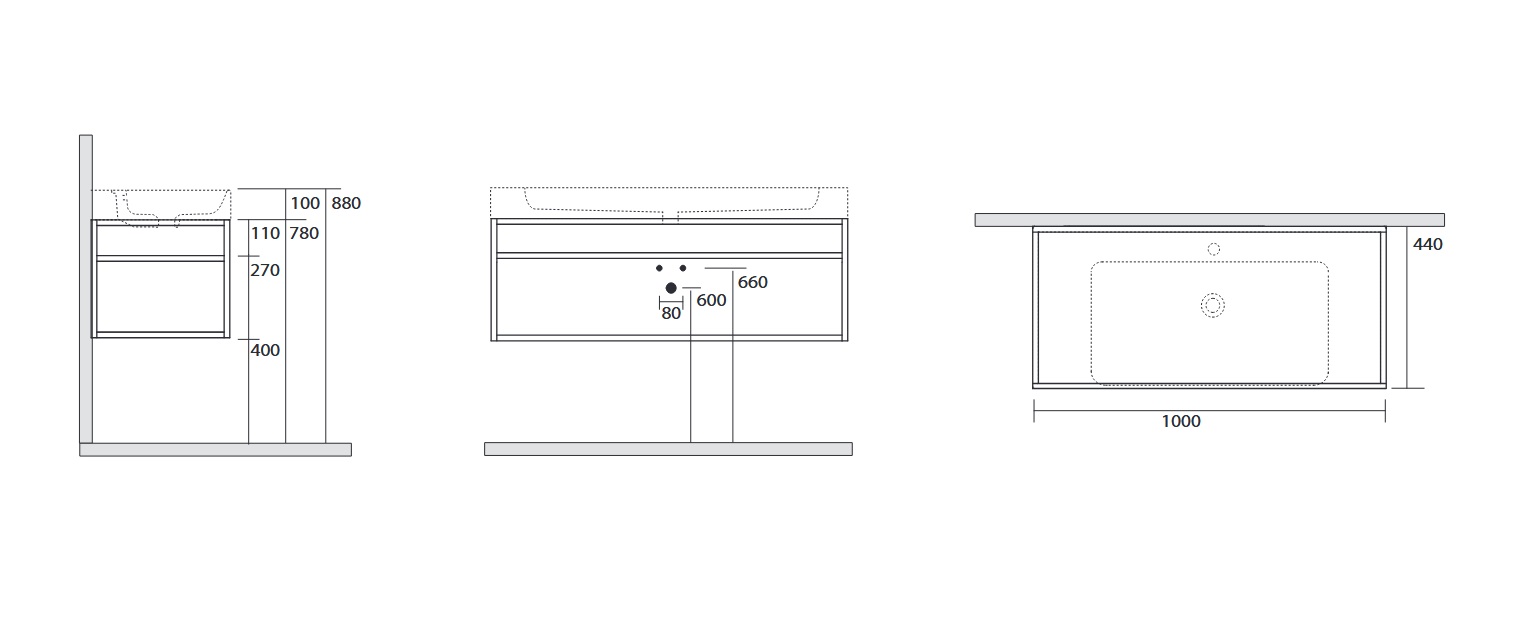 Kerasan Cento Struktura wisząca pod umywalkę 100x45 cm Czarny mat 925131