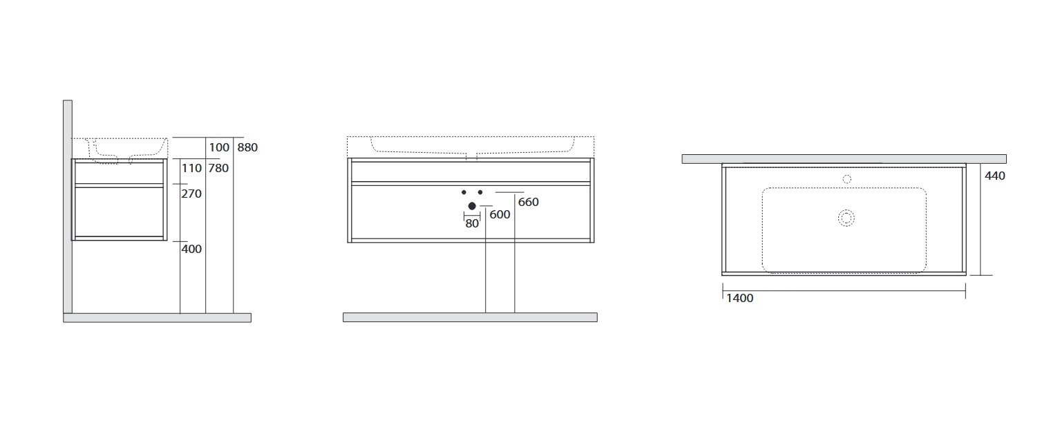 Kerasan Cento Struktura wisząca pod umywalkę 140x45 cm Czarny mat 925331