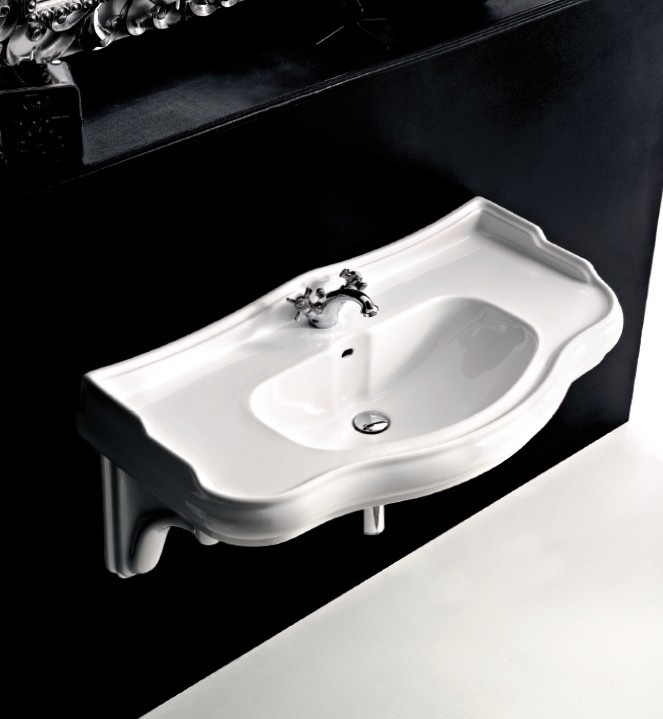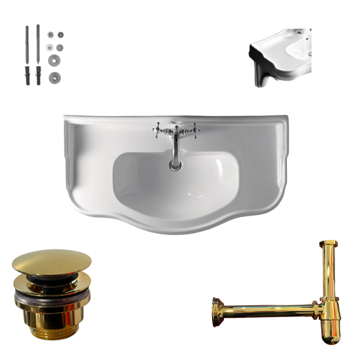 Kerasan Umywalka 100x54,5 + Korek klik klak + Syfon + Wspornik + Mocowanie biały/złoty 105001+050CL/ZŁ+756791+107901+760290