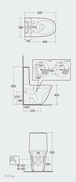 Rak Ceramika Sensation Miska bezrantowa kompakt 62x38 ze spłuczką kompakt i deską wolnoopadającą biały połysk SENS3SET