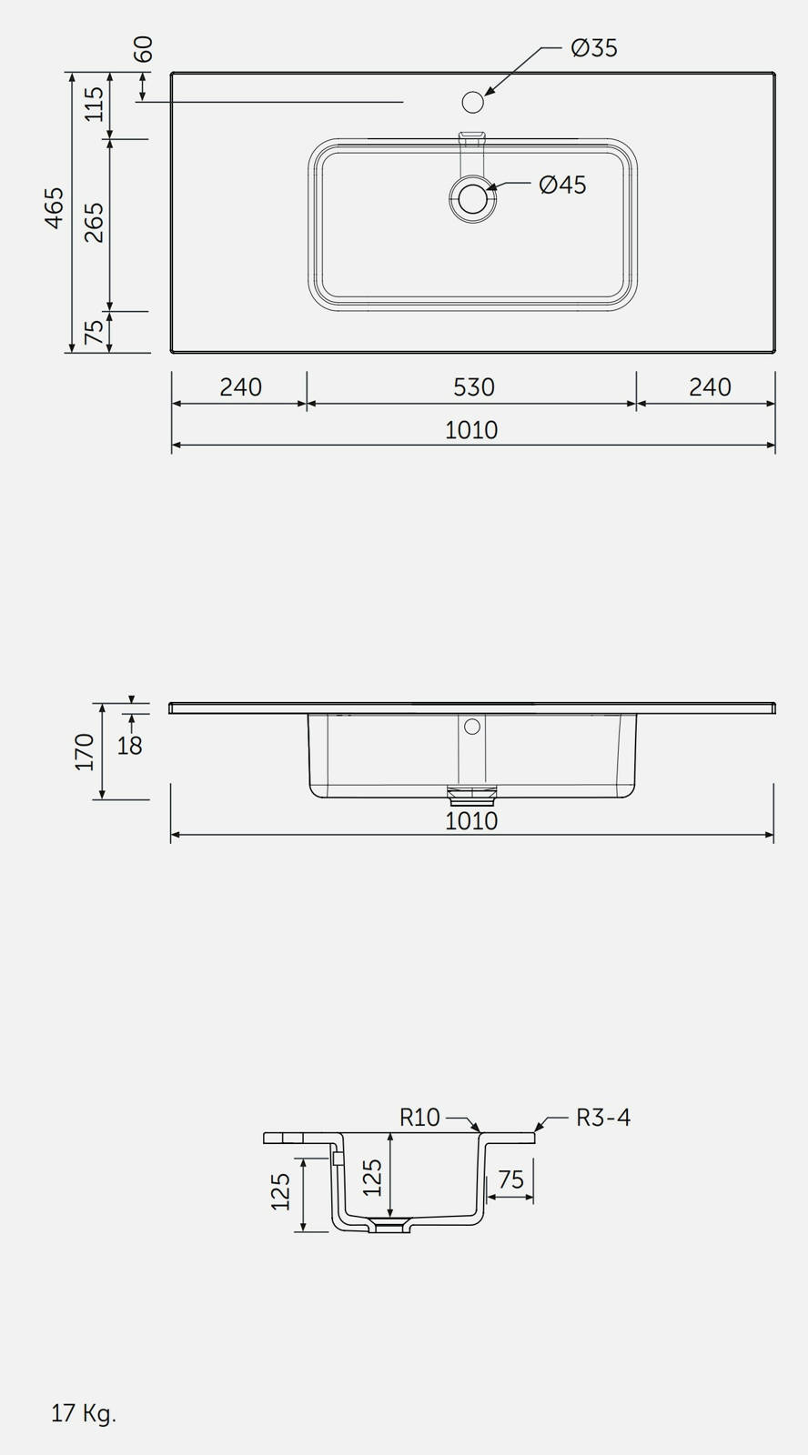Rak Ceramika Joy Zestaw Umywalka meblowa 101x46,5 + szafka podumywalkowa 100x46 szary SETJOYWH100UGY
