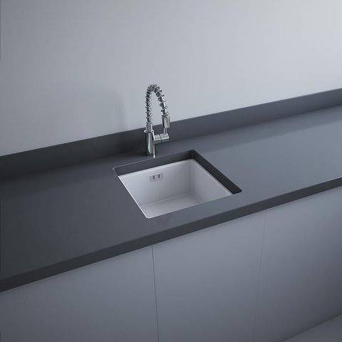 Rak Ceramika Silvia Zlewozmywak ceramiczny jednokomorowy 45x48 biały mat + syfon SILVBIM