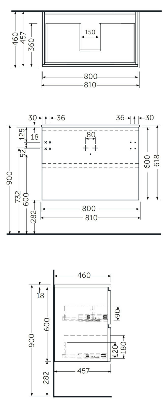 Istnieje możliwość zamówienia szafki w kolorze: Moka Walnut Biały połysk Scandinavian Oak Szary połysk Wymiary: Szerokość: 80 cm Długość: 46 cm Wysokość: 60 cm