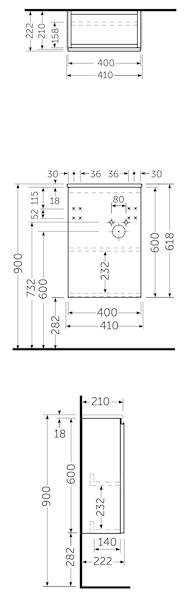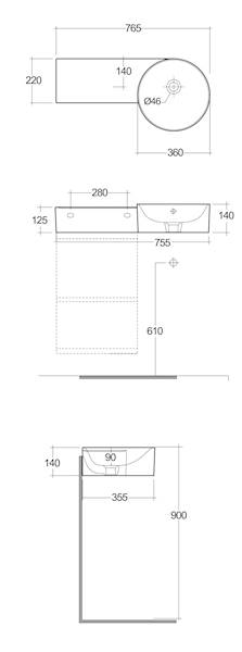 Rak Ceramika Petit Umywalka 77x36 z blatem i szafką podumywalkową 40x22 biały połysk PET177JOY040PWH