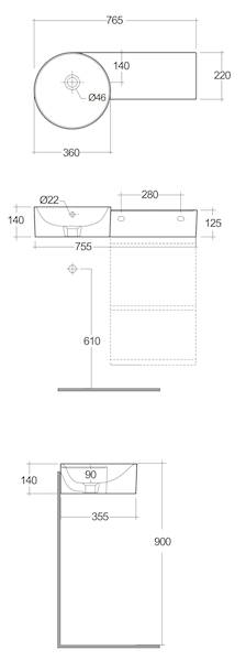 Rak Ceramika Petit Umywalka 77x36 z blatem i szafką podumywalkową 40x22 scandinavian oak PET277JOY040SOK