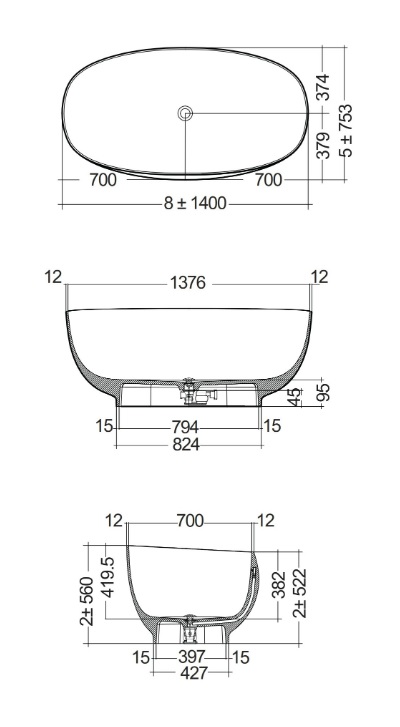 Zintegrowany przelewOdpływ na środkuLakierowanie zewnętrzne
