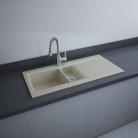 Rak Ceramika Dream1 Zlewozmywak ceramiczny 1,5 komory 101x51 beż mat + syfon DRE1BEM
