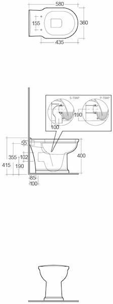 Rak Ceramika Washington Miska do spłuczki zawieszanej 58x36 biały połysk WAWC00001Ukryte mocowanieOdpływ poziom/pion
