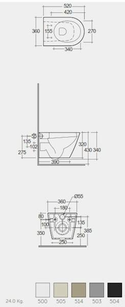 Rak Ceramika Feeling Miska bezrantowa 52x36 biały mat RST23500A