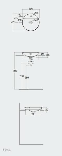 Rak Ceramika Variant Umywalka ∅42 biały połysk VARDI14201AWHA
