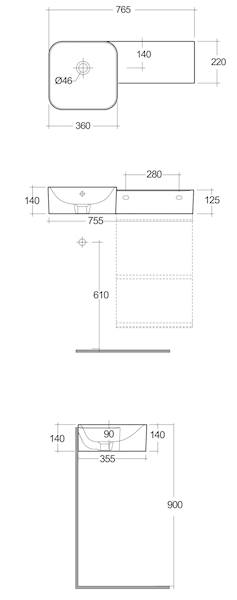 Rak Ceramika Petit Umywalka blat z prawej 76,5x36 biały połysk PETWB47700AWHA