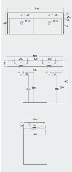 Rak Ceramika Des Umywalka podwójna 121x46 biały połysk DESWB12101AWHA