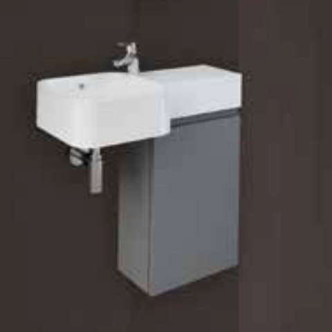 Rak Ceramika PETIT Zestaw Umywalka z blatem z prawej 77x36 biały połysk+Szafka podumywalkowa 40x21 Szary połysk PETWB47700AWHA+JOYWH040UGY