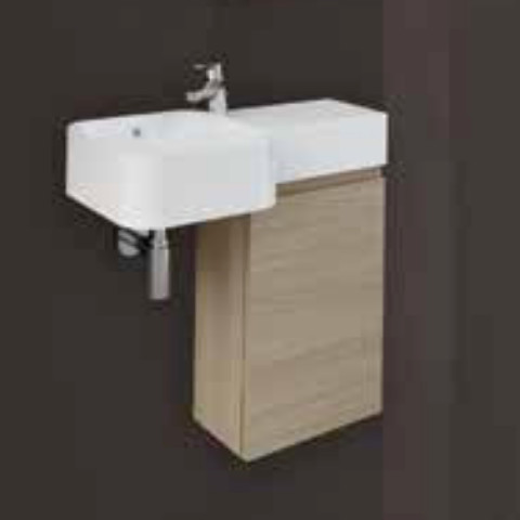 Rak Ceramika PETIT Zestaw Umywalka z blatem z prawej 77x36 biały połysk+Szafka podumywalkowa 40x21 Scandinavian oak PETWB47700AWHA+JOYWH040SOK
