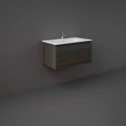 Rak Ceramika Zestaw Joy Umywalka 81x46 biały połysk i Szafka Uno Joy moka walnut SETJOYUNOWH080MOK