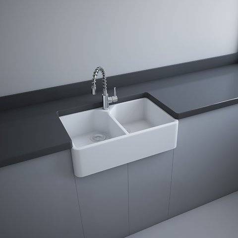Rak Ceramika Jacklyn Zlewozmywak ceramiczny dwukomorowy z syfonem 80x50 biały połysk JACSET