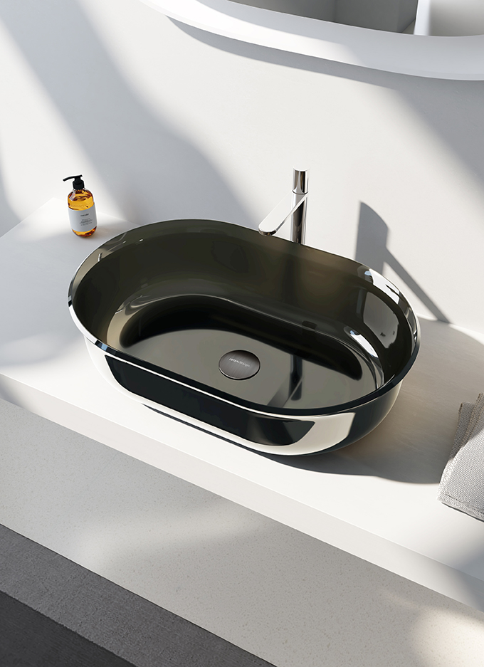 Relax Design Lua Umywalka stawiana przezroczysta z korkiem 60x40 liquirizia LUA60LIQUIRIZIA