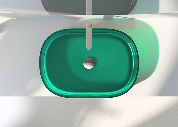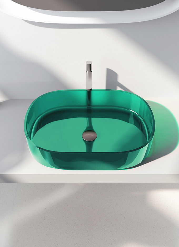 Relax Design Kolu Umywalka stawiana przezroczysta z korkiem 60x42 menta KOLU60
