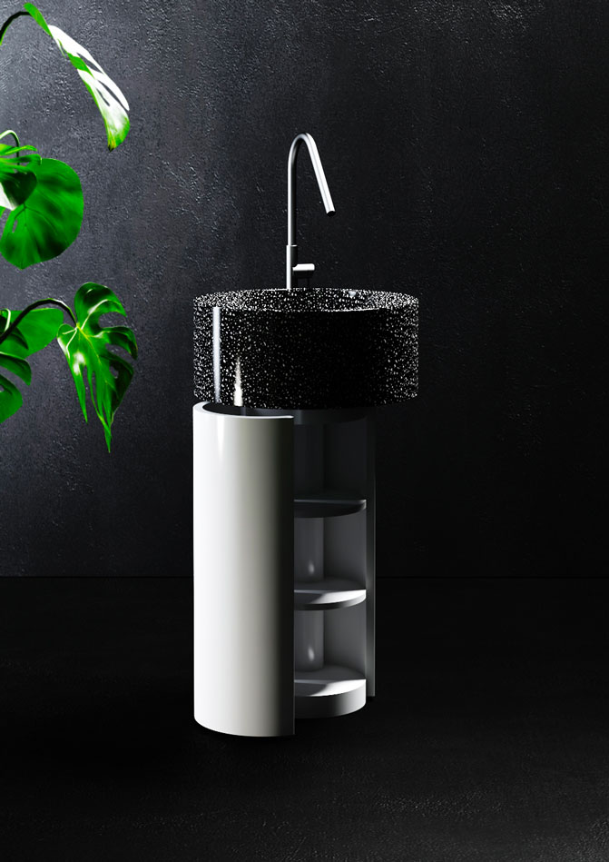 Relax Design Duo Umywalka wolnostojąca ∅50 z szafką cylindryczną white glossy/black-white DUO50LX01GLOSSYBLACKWHITE