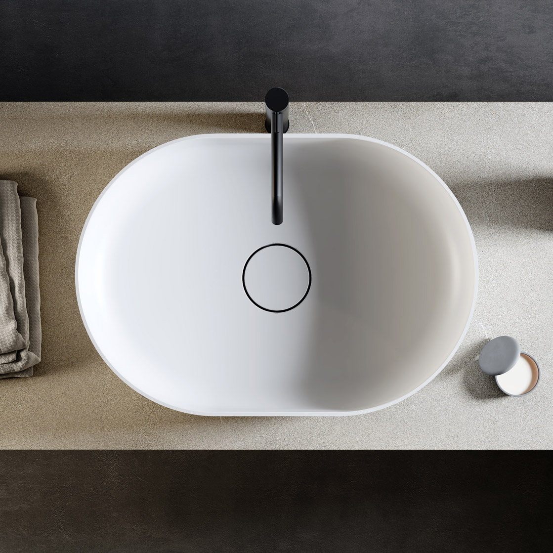 Relax Design Horizon Series Umywalka stawiana 60×42 z korkiem white matt HORIZON60LX01MATT