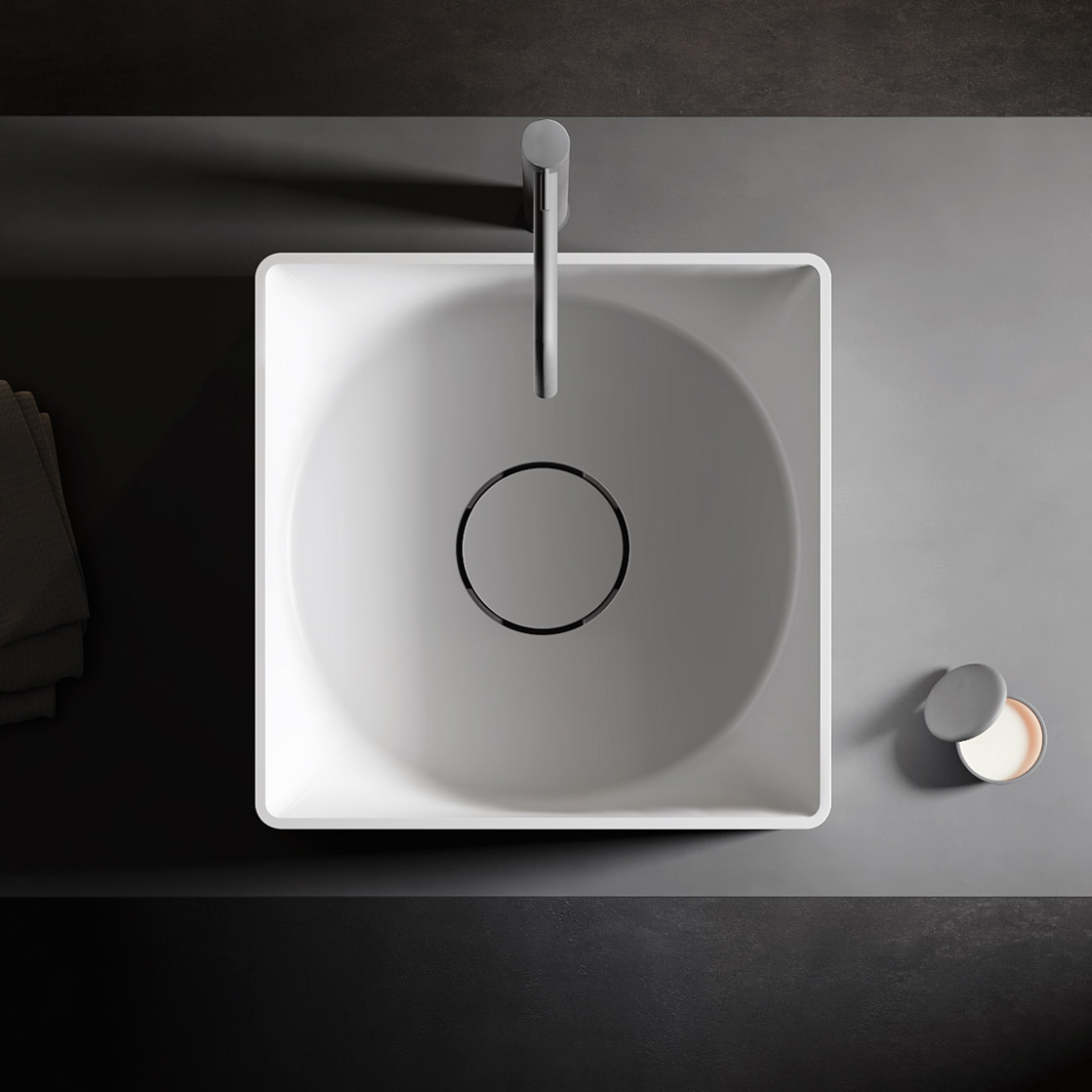 Relax Design Inside Out Umywalka stawiana 42x42 z korkiem white matt INSIDEQLX01MATT