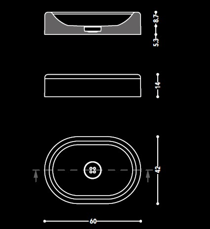 Relax Design Button Umywalka stawiana 60x42 z korkiem white matt BUTTON60LX01MATT