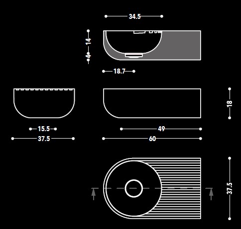 Relax Design Mitos Umywalka stawiana 60x37,5 z korkiem white matt MITOSLX01MATT60