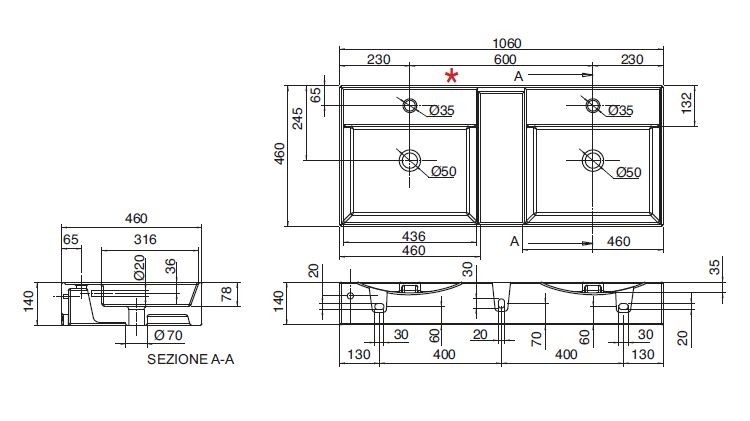 Scarabeo Teorema Umywalka 106x46 biały 8035