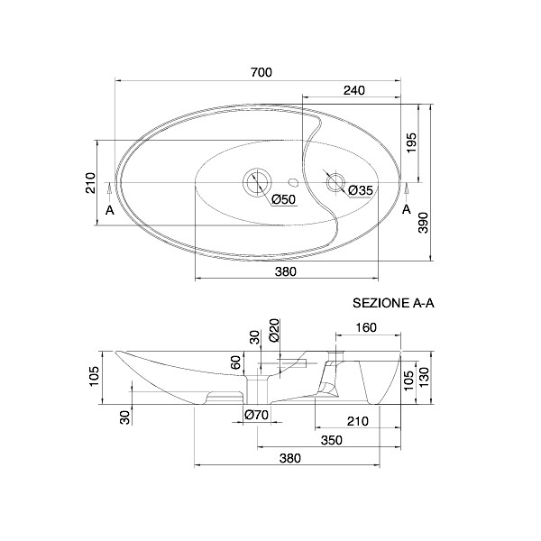 Scarabeo Shape Umywalka 70x39 biały 8097