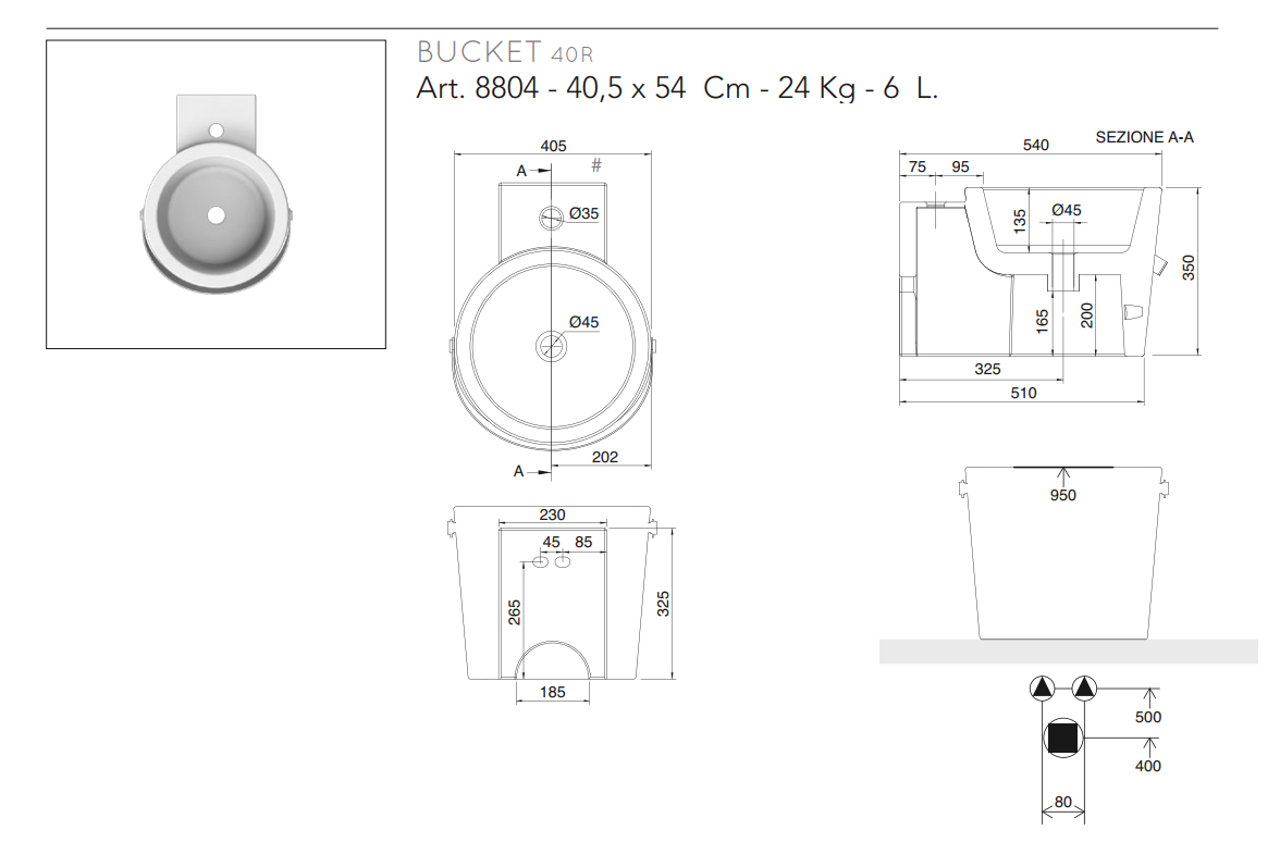 Scarabeo Bucket Umywalka 40,5x54 biała 8804