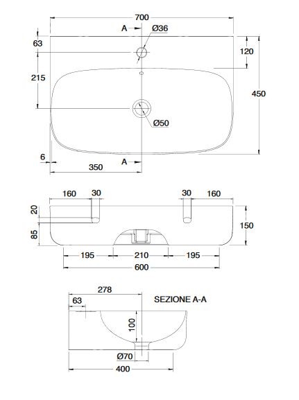 Scarabeo Moon Umywalka 70x45 biała 5508