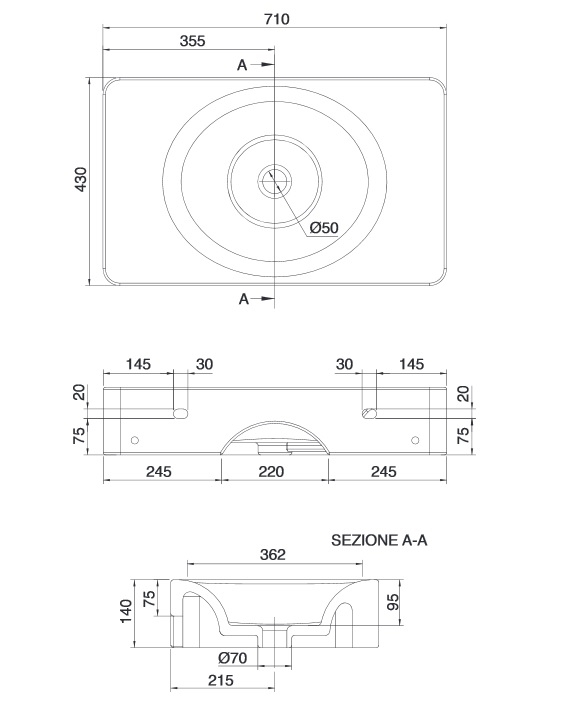 Scarabeo Fuji Umywalka 71x43 biały 6002