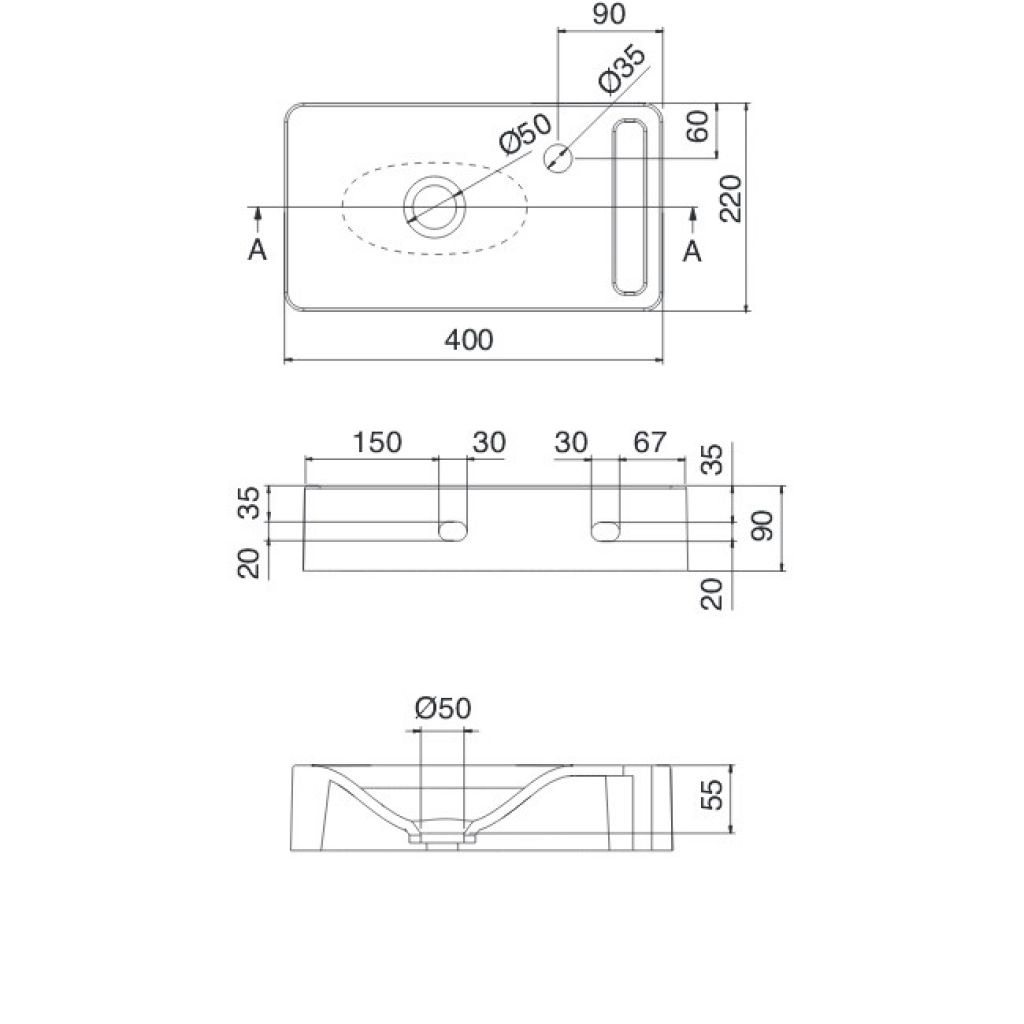 Scarabeo Hung Umywalka z uchwytem na ręcznik po prawej 40x22 biały 1513