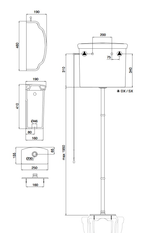 Scarabeo Castellana Zbiornik do WC górnopółkowy 19x46 cm Biały 5364