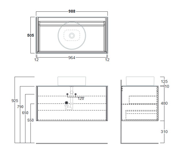 Szafkę podwieszaną należy uzupełnić blatem ceramicznym o odpowiednim rozmiarze (100)