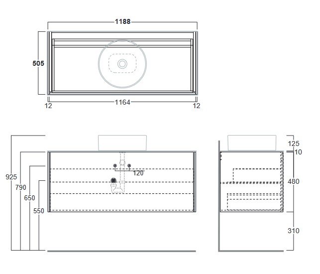 Szafkę podwieszaną należy uzupełnić blatem ceramicznym o odpowiednim rozmiarze (120)