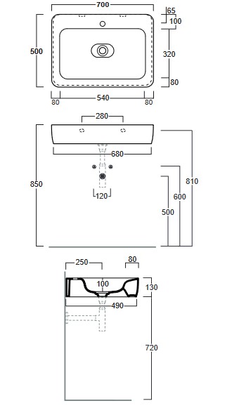 Simas Henges Umywalka stawiana na blat/wisząca z otworem na baterię prostokątna 70x50x13 cm biały HE10