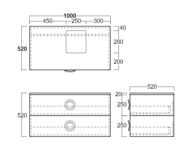 Simas Henges Szuflada podwójna wisząca z uchwytem chromowanym 100x52x52 cm biały połysk HEM02