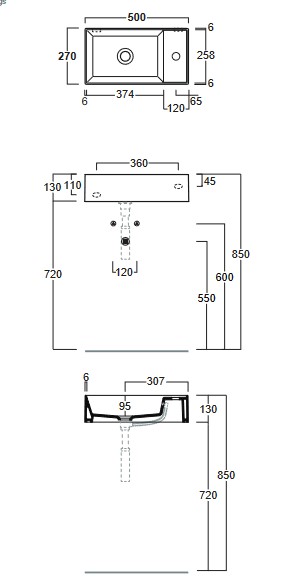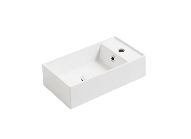 Simas Agile Umywalka stawiana na blat/wisząca z otworem na baterię prostokątna z półką po prawej 50x27x13 cm biały AG50