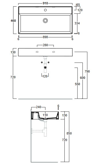 Simas Agile Umywalka stawiana na blat/wisząca z otworem na baterię prostokątna 91x46x13 cm biały AG91