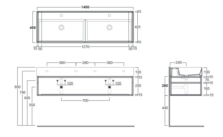 Simas Agile Stelaż wiszący pod umywalkę AG141D 140x45,5x28 cm nero matt AGSS141D