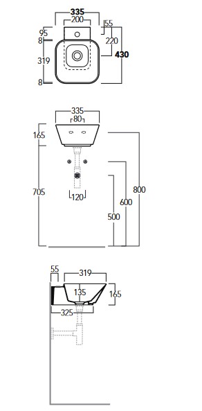 Simas Wave Umywalka stawiana na blat/wisząca z otworem na baterię 33,5x43x16,5 cm biały WA07