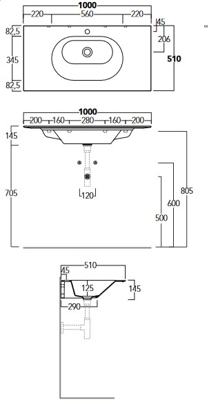 Simas Wave Umywalka ścienna z otworem na baterię prostokątna 100x51x14,5 cm biały WA100