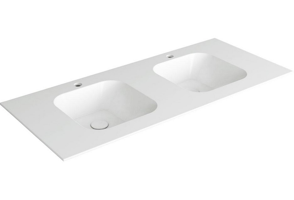 Simas Wave Umywalka podwójna ścienna z otworem na baterię prostokątna 120x51x14,5 cm biały WA120