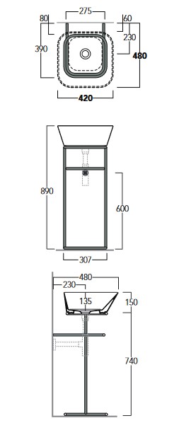 Simas Wave Stelaż wolnostojący pod umywalkę WA03 31x39x74 cm nero matt WASA03